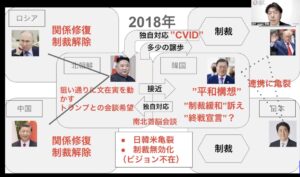 2017年から2019年にかけて、南北首脳会談や米朝首脳会談が行われ、多くの人々が統一への期待を抱きました。しかし現実には統一は実現せず、北朝鮮を取り巻く地域の緊張は続いています。当時、北朝鮮は核実験を繰り返し、アメリカは制裁と軍事的圧力を強化しました。韓国や日本、中国、ロシアも歩調を合わせ、冷戦の枠組みを脱却し北朝鮮に制裁を行いました。金正恩氏は孤立感からムン・ジェイン大統領に接近し、北朝鮮と独自に首脳会談を行い、制裁緩和や朝鮮戦争終戦宣言の可能性を訴えました。アメリカは核放棄を条件に交渉しましたが、これは人道的な問題が解決されない方法であり、各国の共通のビジョンが不在であったため、北朝鮮に譲歩の隙を与える結果となり、核放棄も実現しませんでした。その後、2019年2月のハノイ米朝会談も決裂し、具体的な合意は得られませんでした。この経緯から学べる教訓は、国際社会が共通の目標を持たなければ、平和交渉は容易に崩れるという点です。