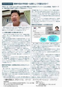 ◾️ 5/24開催予定「北東アジアの未来のためのビジョン〜最大の難問、朝鮮半島問題を中心として〜」(オンラインセミナー)